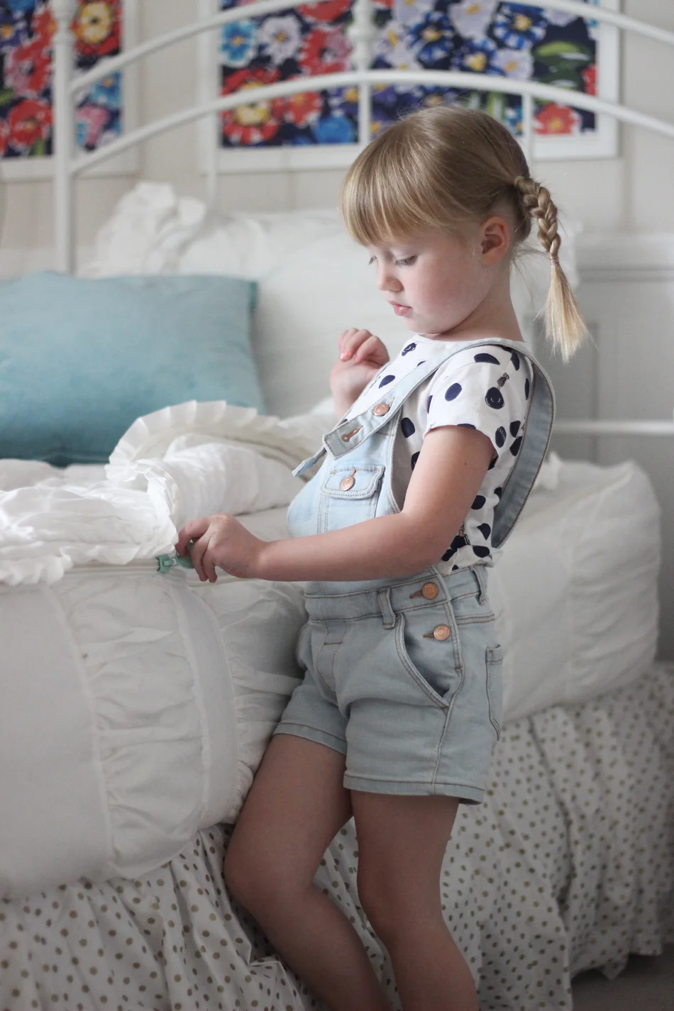 A couple other favorite details about her room... Obviously that amazing wallpaper designed by Natalie Malan Studio for Spoonflower. The serious "pop" (slight understatement) of color makes it a happier little room to dwell in! And with the stick and peel option, it was cake to put up. Lot's of heart eyes for that. And her Beddy's zip-up bedding has seriously changed my life! My four-year-old can make her own flipping bed. Is that a choir of angels singing?! Nope, just me. They are awesome and gave me a code for you to use so you also, never have to make your child's bed again! See below. Also, that wood work Scott did around the wallpaper and below. 👌🏼 What a guy. It took him maybe ten hours, but I love how it turned out.