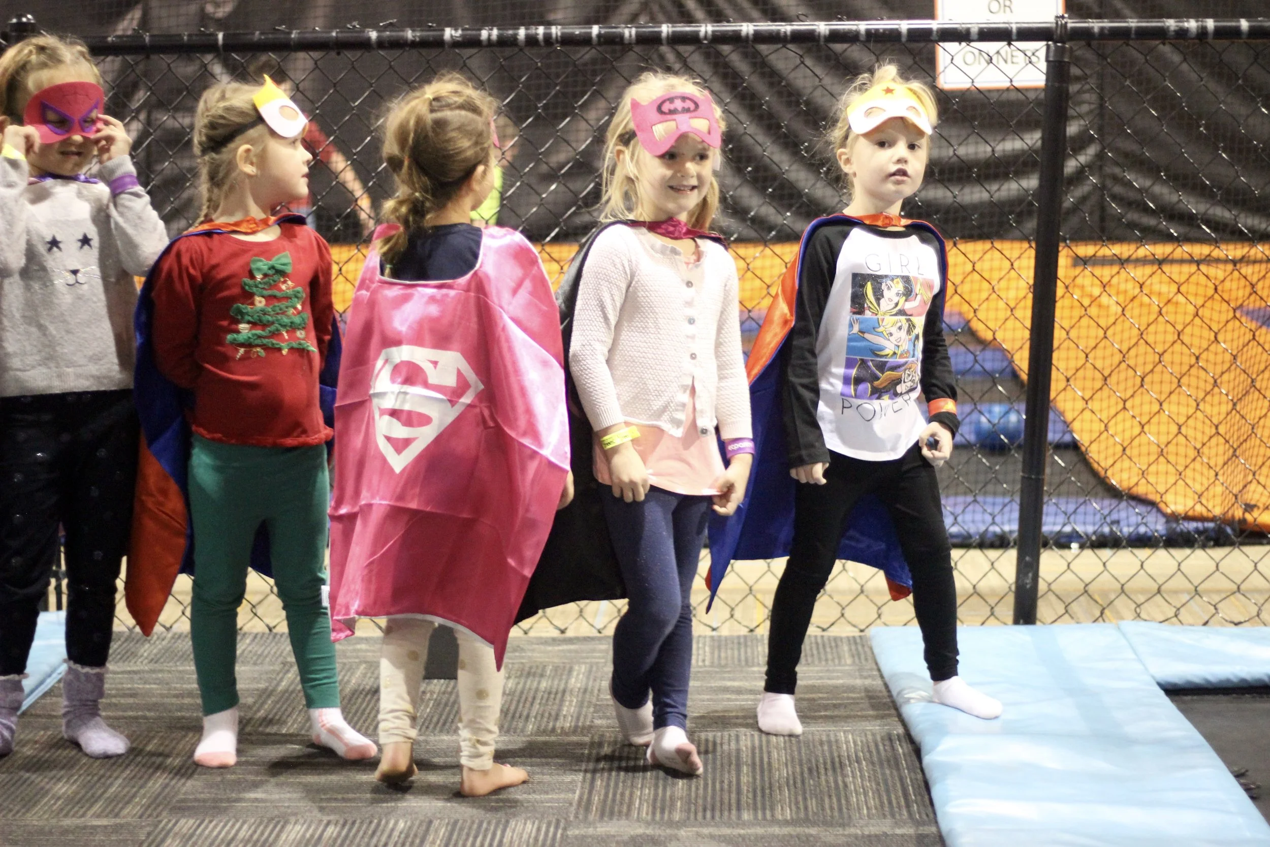 December birthdays... So hard when you live in a snowy state! I am an absolute grinch when it comes to kid birthdays and putting in any sort of effort. Awful, yes but it's the cold hard truth. ;) So imagine poor Scarlett having a birthday in the busiest month of the year... double grinch! No outdoor options and the last thing I want to do is invite a bunch of little snow-tracking kids into the house! So for the second year in a row, we did a party for her at Airborne, a trampoline arena. And for the second year in a row, she had an absolute blast! She picked a few of her bestest little pals and had a "girl power" party which only required me to book the place, order super-girl capes and masks and pick up Sweet Tooth Fairy for all! A win-win if you ask me.